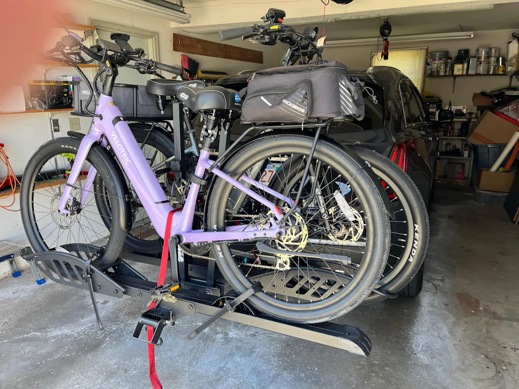 Bike rack order went smoothly, and arrived quickly and packed well. This is a very sturdy rack that easily handles our two electric bikes, each weighing approximately 88 pounds. Easy to put together. My husband and I are older so it did take both of us carrying the rack to the car, but we didn’t find it too difficult. Make sure you have a 2” receiver hitch; we had one installed at Uhall for a fair price. Also, I highly recommend the lock and ramp. We also purchased a ratchet wrench to secure the rack to the hitch which made the job of tightening down the bolt a whole lot easier! This bike rack is well priced and good quality.