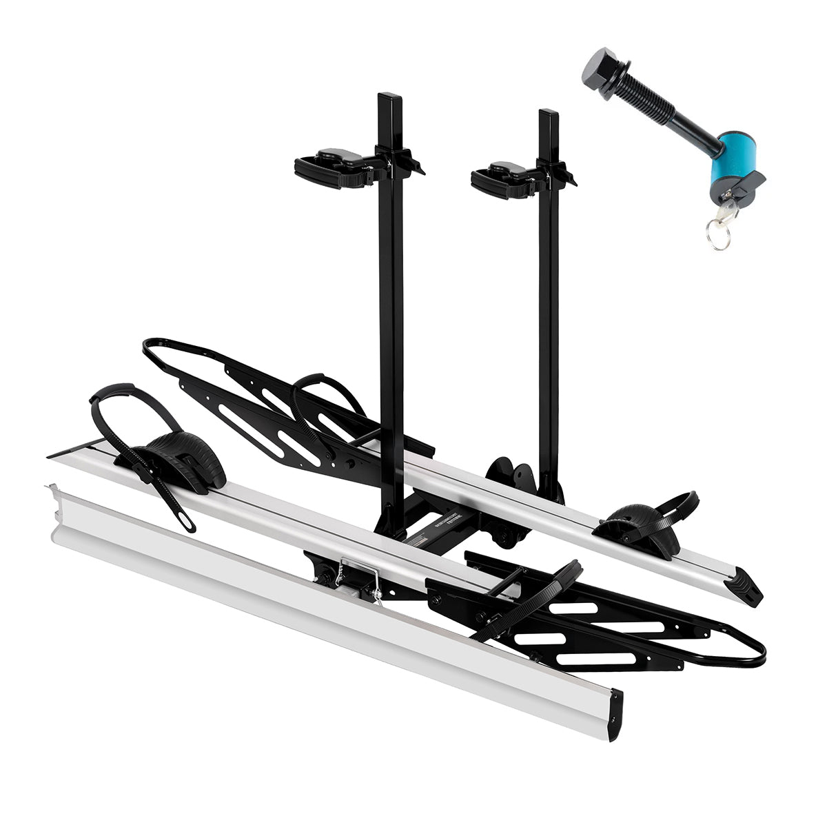 2-Bike Hitch E-bike Rack with Ramp, Fat Tire Electric Bike Carrier, 200 LBS Capacity, Fits 2'' Receiver with Lock