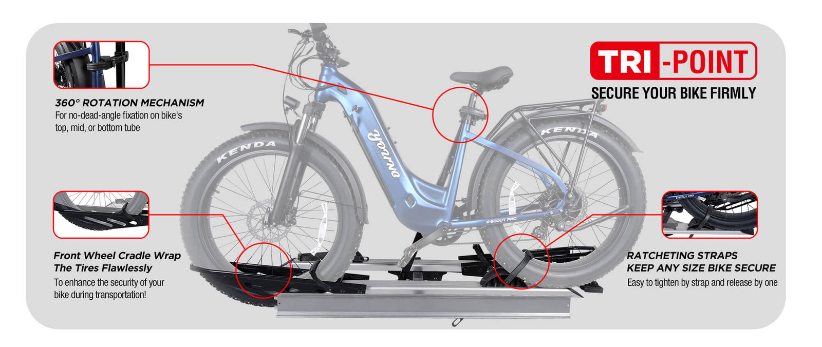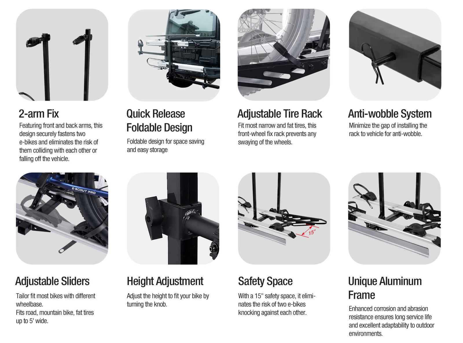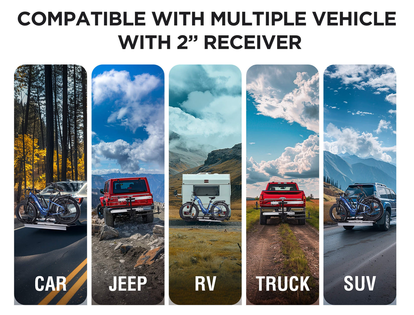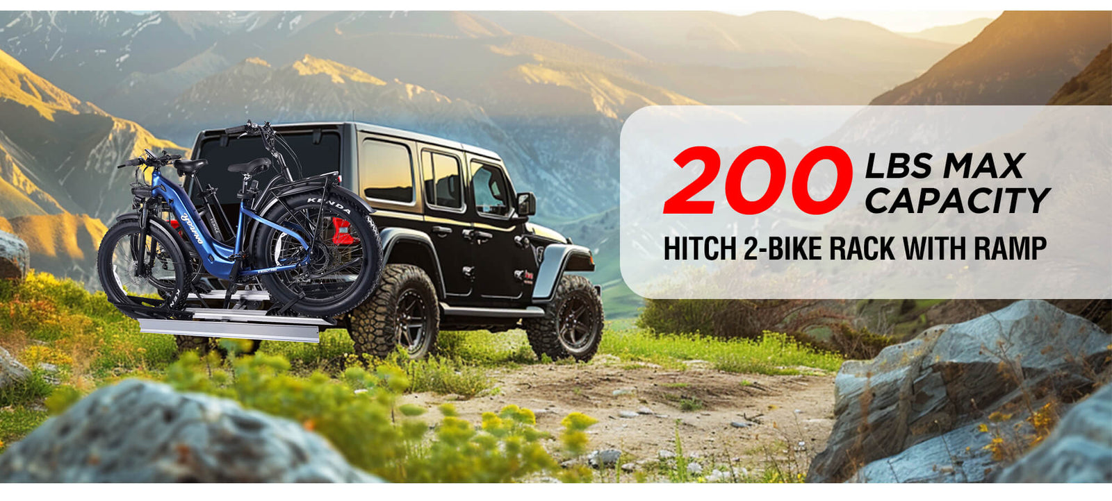 2-Bike Hitch E-bike Rack with Ramp, Fat Tire Electric Bike Carrier, 200 LBS Capacity, Fits 2'' Receiver