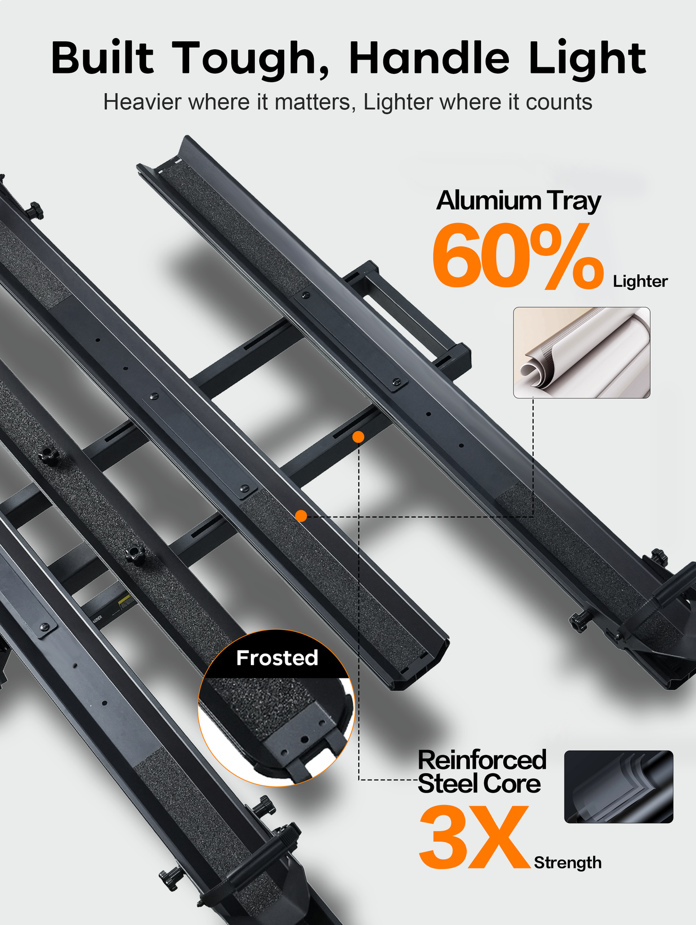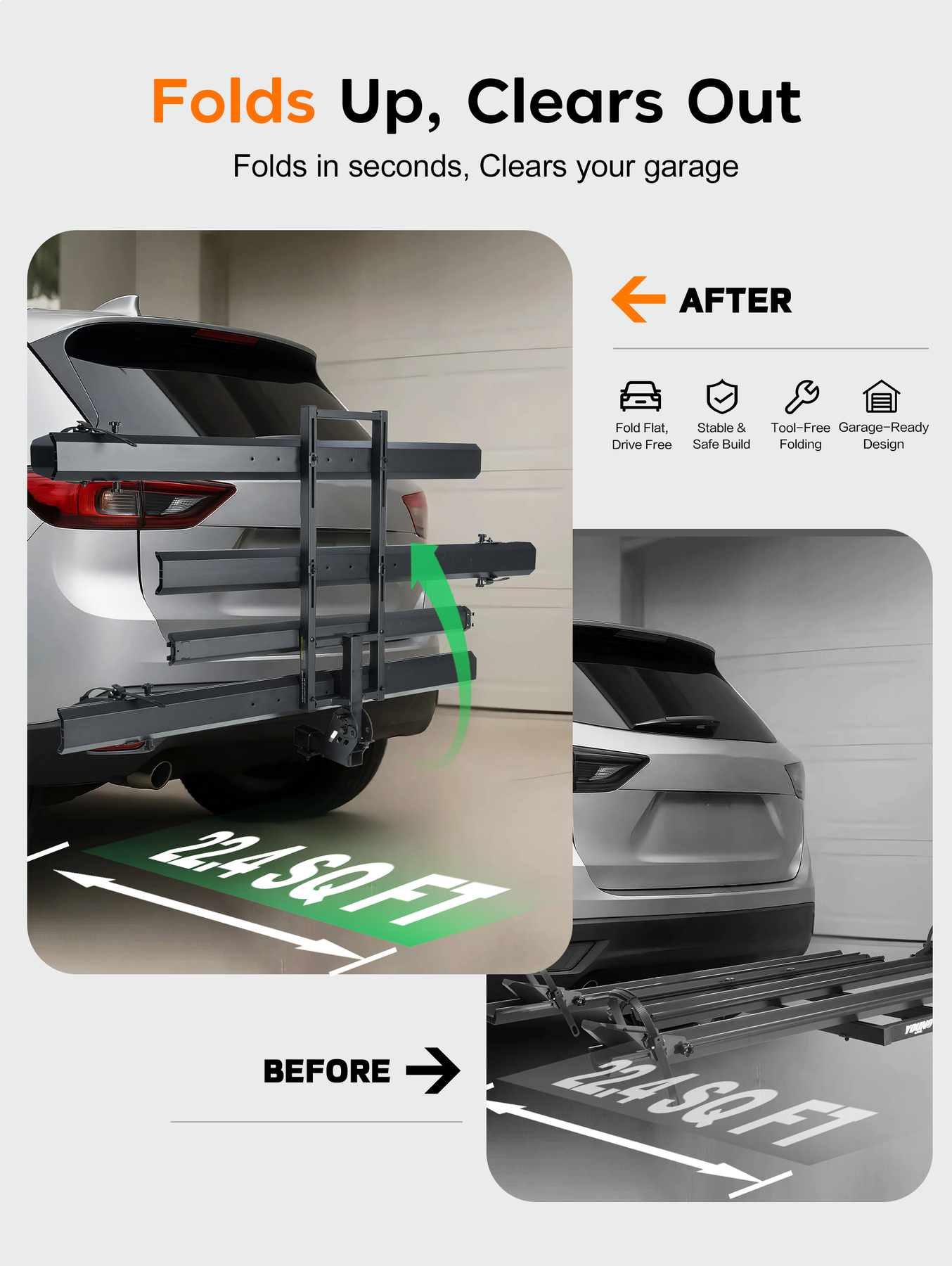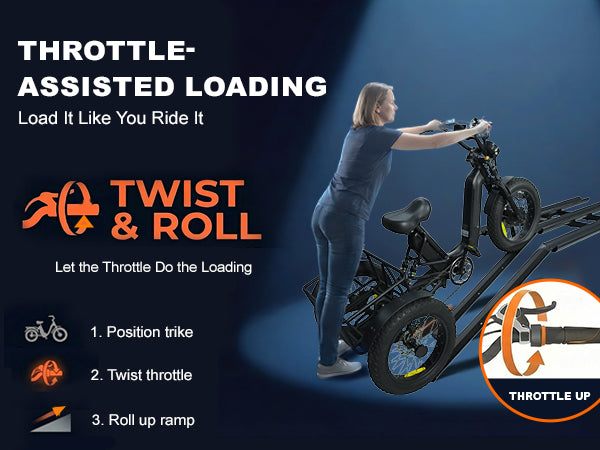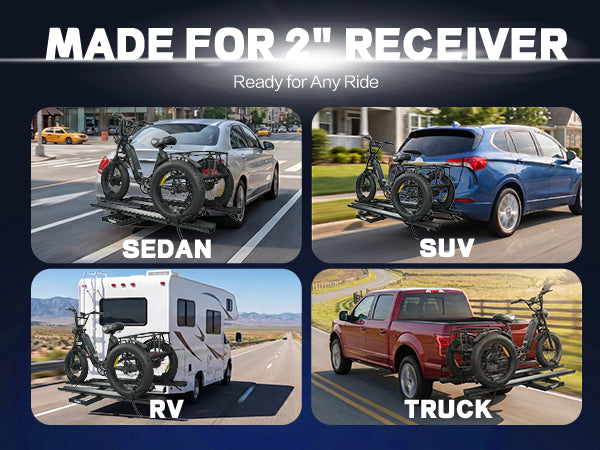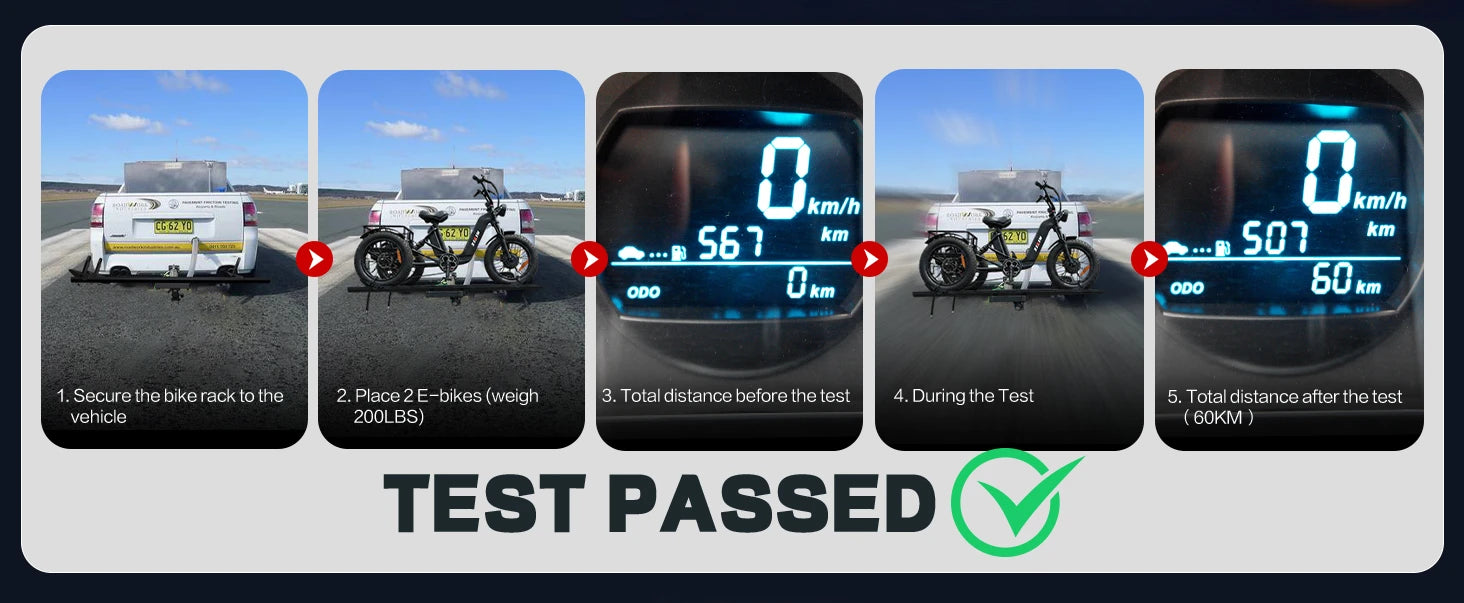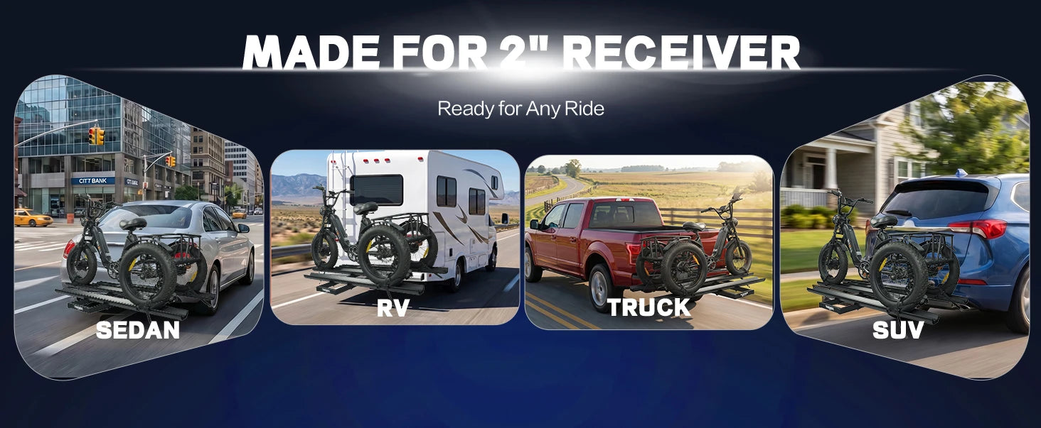 3pcs Loading Ramp for Effortless Loading -- Comes with three integrated ramps, the electric trike rack allows you to roll your trike onto the rack directly without heavy lifting. Easy single-person loading and unloading, saving time and physical effort during transportation.