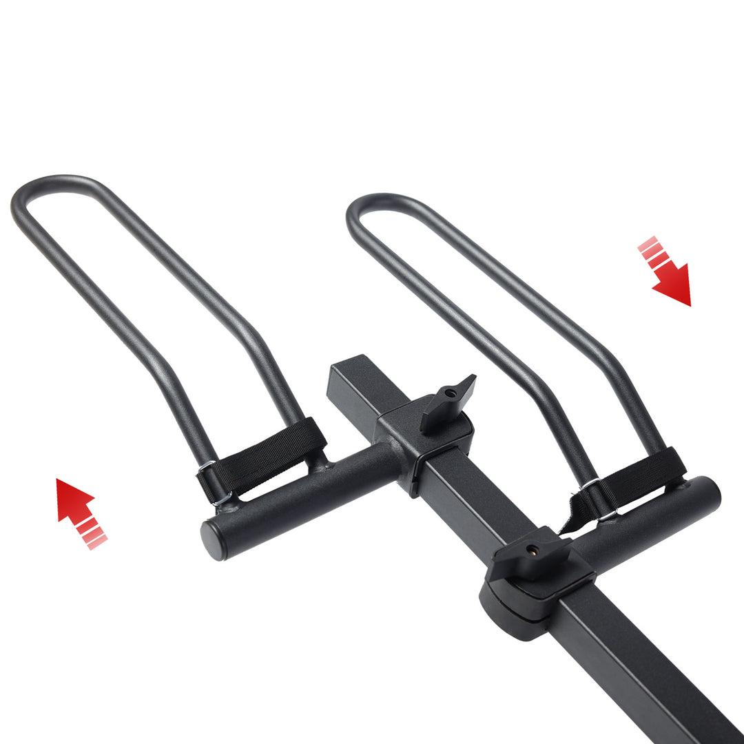 The padded hook slides on the bike rack to accommodate different sizes of bikes while preventing scratches and scuffs, and the hook pin prevents the hook from loosening and dislodging during travel.